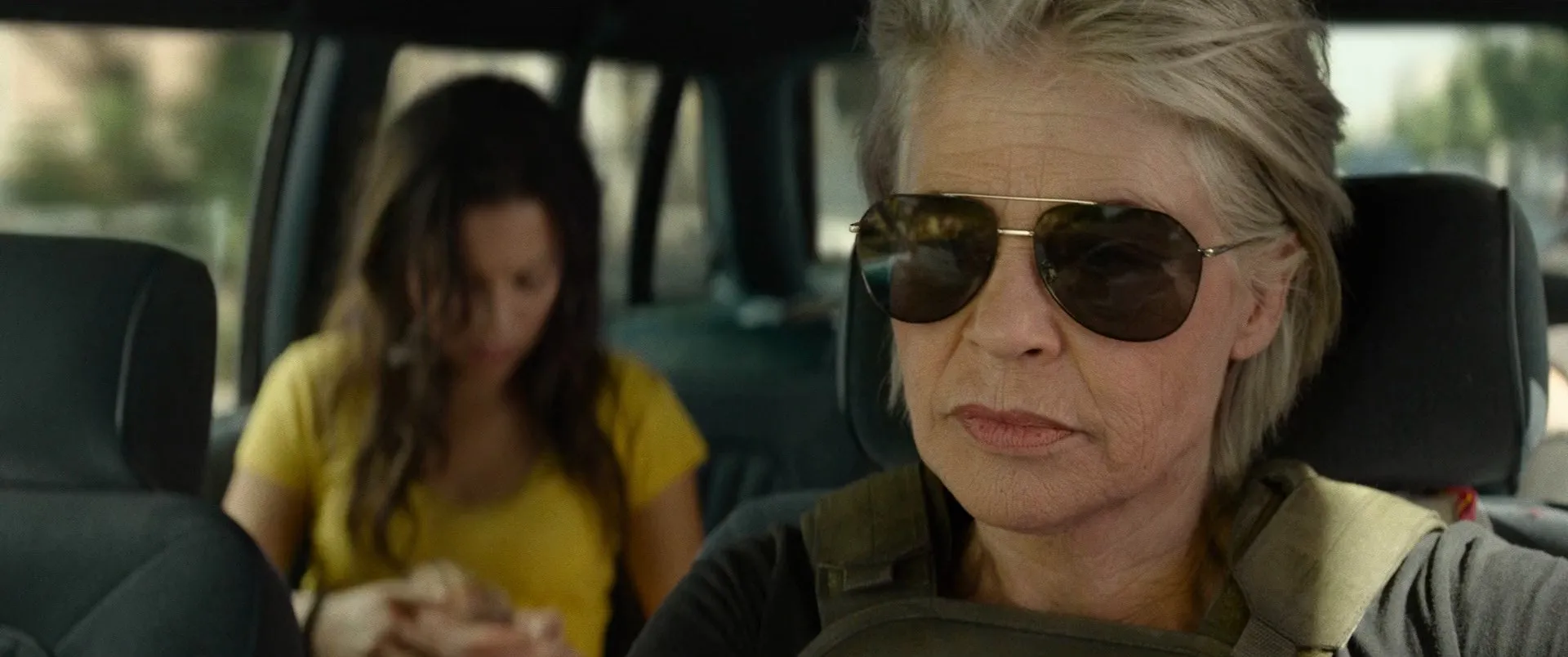 Cast: Linda Hamilton as Sarah Connor, Arnold Schwarzenegger as T-800 / Carl, Mackenzie Davis as Grace, Natalia Reyes as Daniella "Dani" Ramos, Gabriel Luna as Gabriel / REV-9, Diego Boneta as Diego Ramos, Ferran Fernández as Flacco, Tristán Ulloa as Felipe Gandal, Stephanie Gil as Young Grace (10yrs), Tomás Álvarez as Lucas / Floor Guard, Tom Hopper as Hadrell, Alicia Borrachero as Carl's Wife, Enrique Arce as Dani Ramos's Father, Manuel Pacific as Mateo, Fraser James as Major Dean, Pedro Rudolphi as Cholo, Diego Martínez as Cesar Mateo, Kevin Medina as Pepito, Steven Cree as Rigby, Matt Devere as US Border Riot & Locker Officer, Karen Gagnon as AFB Operator, Neil Corbould as BBQ Host Dad, Lorna Brown as US Border - Agent Brenner, Stuart McQuarrie as Craig - Factory Supervisor, José Cerós as Dam Worker, Shadday López as Diego's Friend at Workstation, Pedro Hernández as Foreman Silvio, Mariah Nonnemacher as BBQ Female Guest, Peter Schueller as US Border Gate Officer, Jacques A. Nevils as US Border Agent, Daniel Ibáñez as Miguel, Mona Martínez as Old Street Seller, Francis McBurney as USAF Loader, Mikey Bharj as ICE Medic, Samantha Coughlan as ICE Medic, James Barriscale as US Border X-Ray Officer, Alejandra Mayo as Mexican Mum on Train, Angelica Andreu as Bario Neighbor, Iria Calero as Guatemalan Girl (10yrs), Dan Stroiman as Airman Graham / Tech, Tábata Cerezo as Julia, Nicholas Wittman as F-35 Pilot, Daniel Ortiz as Pharmacist, Mark Hesketh as Texas Ranger, Peter Ormond as Texas Ranger, Joaquín Molla as Detainee Axel, Alberto Da La Sinda as Oldsmobile Driver, Mario de la Rosa as Mexico City Cop, Zoltán Téglás as US Border Desk Sergeant, Blair Jackson as JP, Phillip Garcia as Rusty, Tarnue Massaquoi as Zack Hardy, Cleveland Berto as T. Gill, Christine Horn as Owens, Pete Ploszek as Ackers, Mark Weiler as Surgeon, Kacy Owens as Maggie Curtis, Stephen Oyoung as Technician Curtis, Anisha Gibbs as Cohort, Anthony Oh as Scavenger with Club, Josh Wood as Pilot #2, Aaron Kunitz as John Connor (voice), Edward Furlong as John Connor Reference, Geneviève Doang as Resistance Nurse, Georgia Simon as Grace's Mother (voice), Rochelle Neil as C-5 Co-Pilot (uncredited), Brett Azar as T-800 (uncredited), Jude Collie as Young John Connor (uncredited)